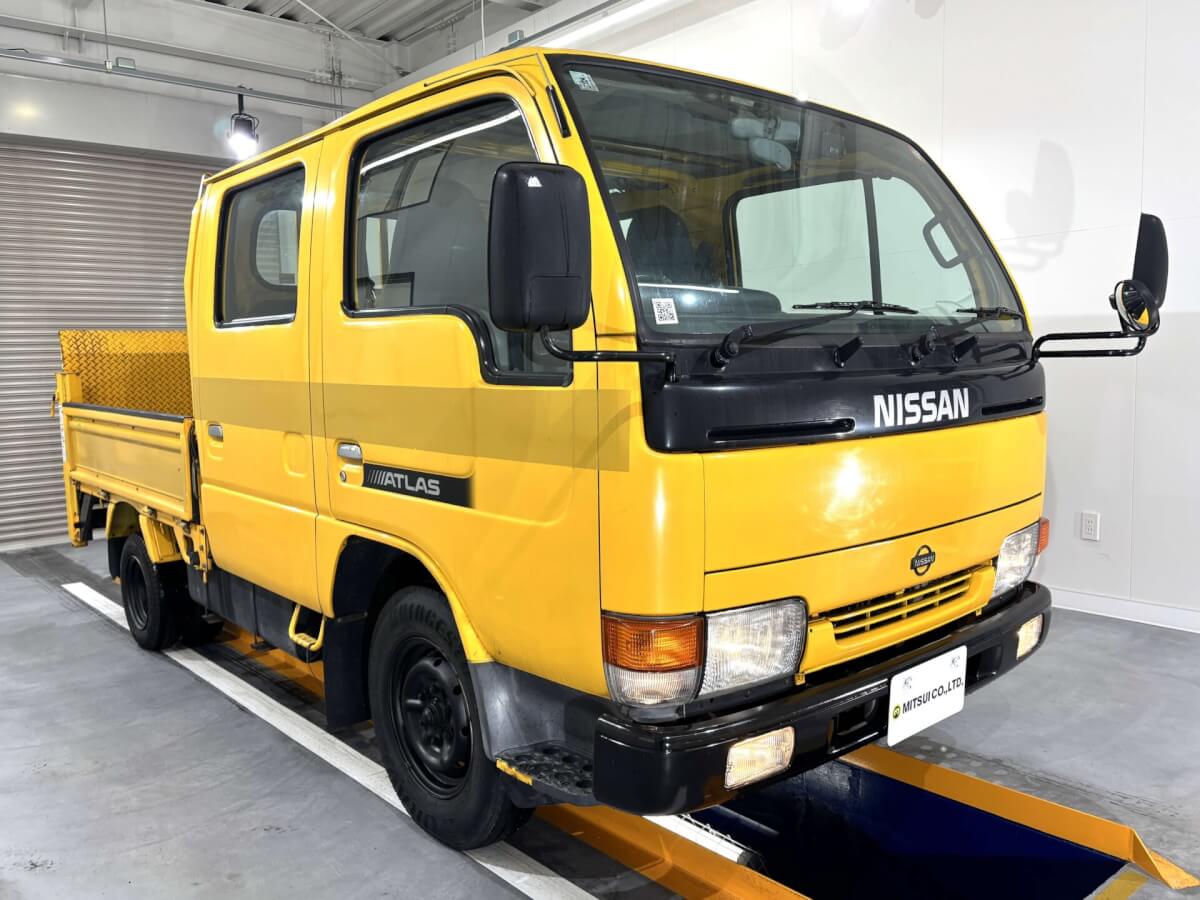 • FINALLY HERE! Nissan Atlas Double Cab Truck – Bright Canary Yellow Seats 6 people, features a rear power lift gate, and stands out everywhere it goes. Work hard during the week. Have fun on the weekend. Load your gear. Bring your friends. Where will you go next?