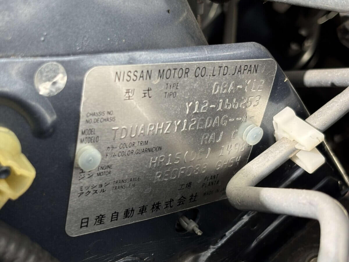Model Code DBA-Y12 VIN Y12-166253