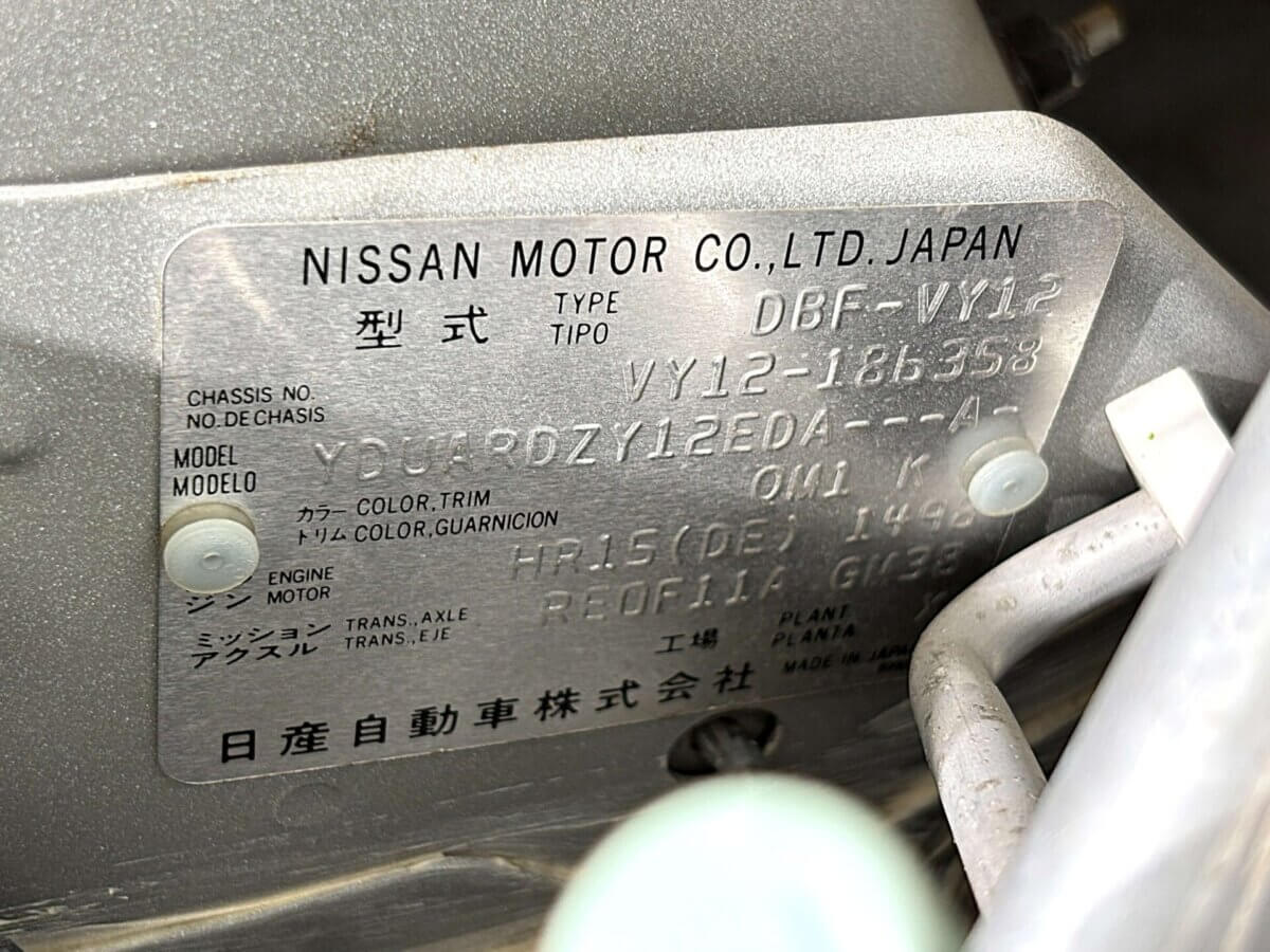 | Model Code | DBF-VY12 | VIN | VY12-186358 |