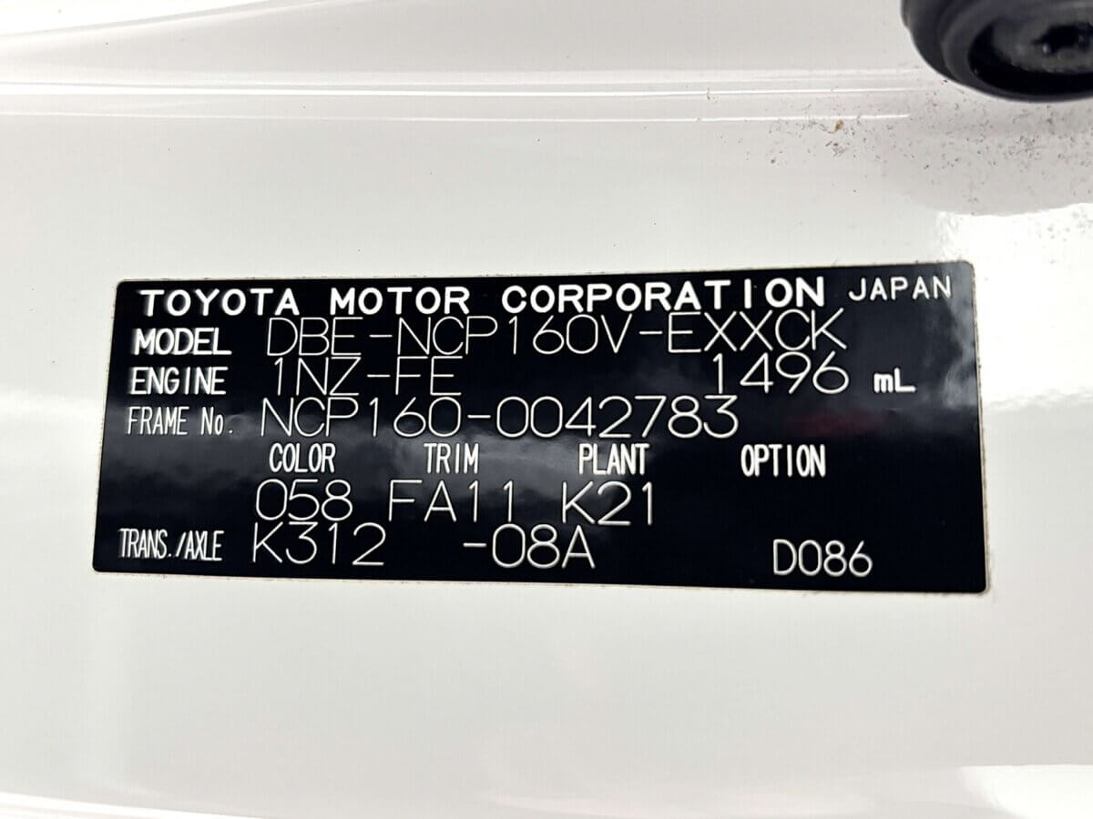 Model Code DBE-NCP160V VIN NCP160-0042783