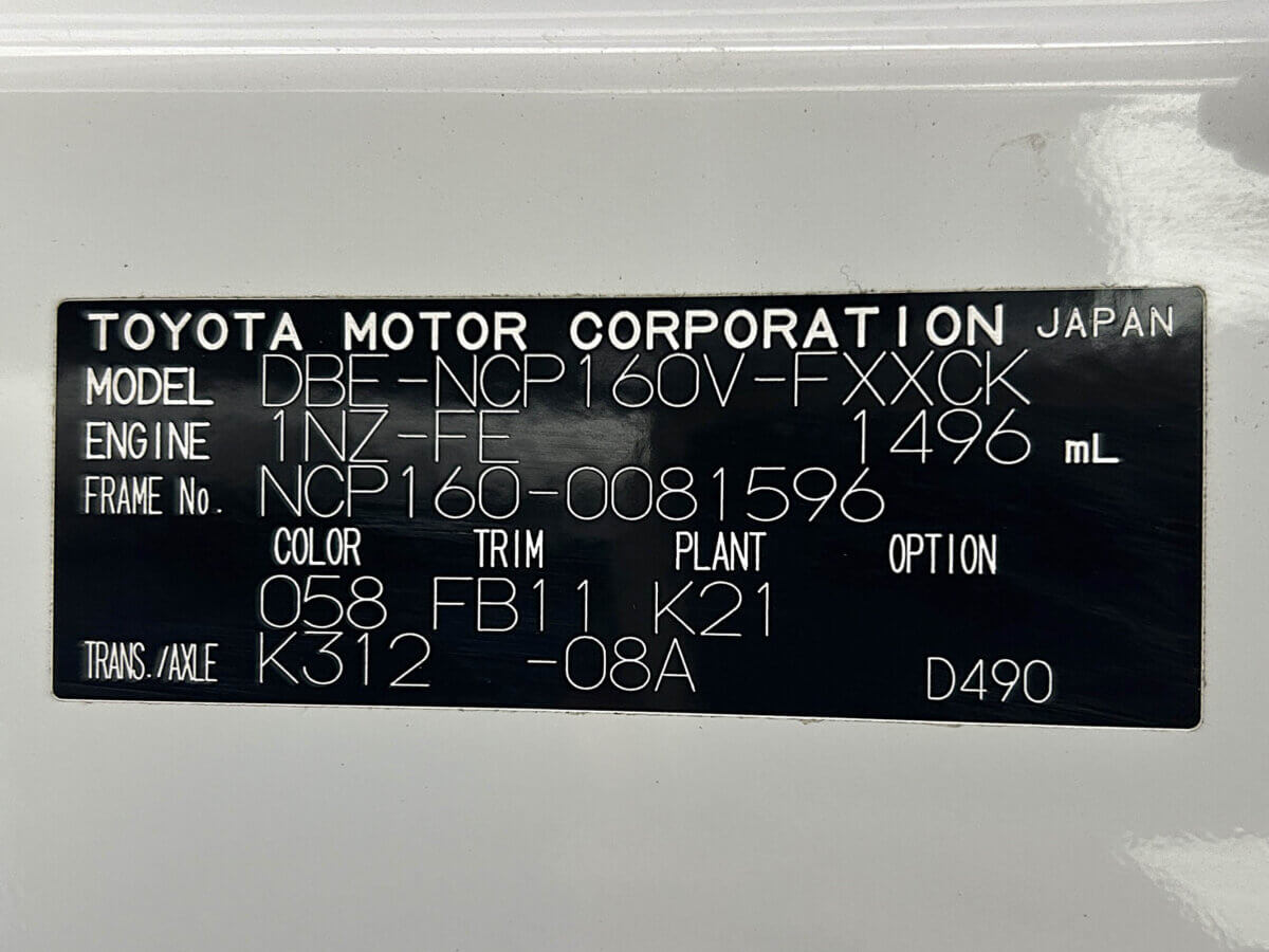 Model Code DBE-NCP160V VIN NCP160-0081596